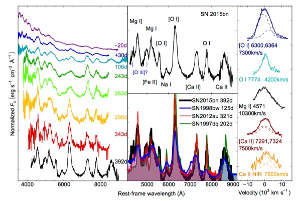 Evidence of a connection between superluminous supernovae and the hypernovae that accompany long gamma-ray bursts has been building for a few years now. There was even a whole conference this summer at the Space Telescope Science Institute to discuss it (the vote came out pretty evenly split!). But now we have what seems to be the strongest evidence yet. Our results (published in the Astrophysical Journal Letters and available here) show that once these supernovae have expanded sufficiently that the ejected material has become transparent, the two classes look virtually identical! This indicates a similar composition and density structure, and may be a clue that the two types of supernova result from similar stars or explosion mechanisms.